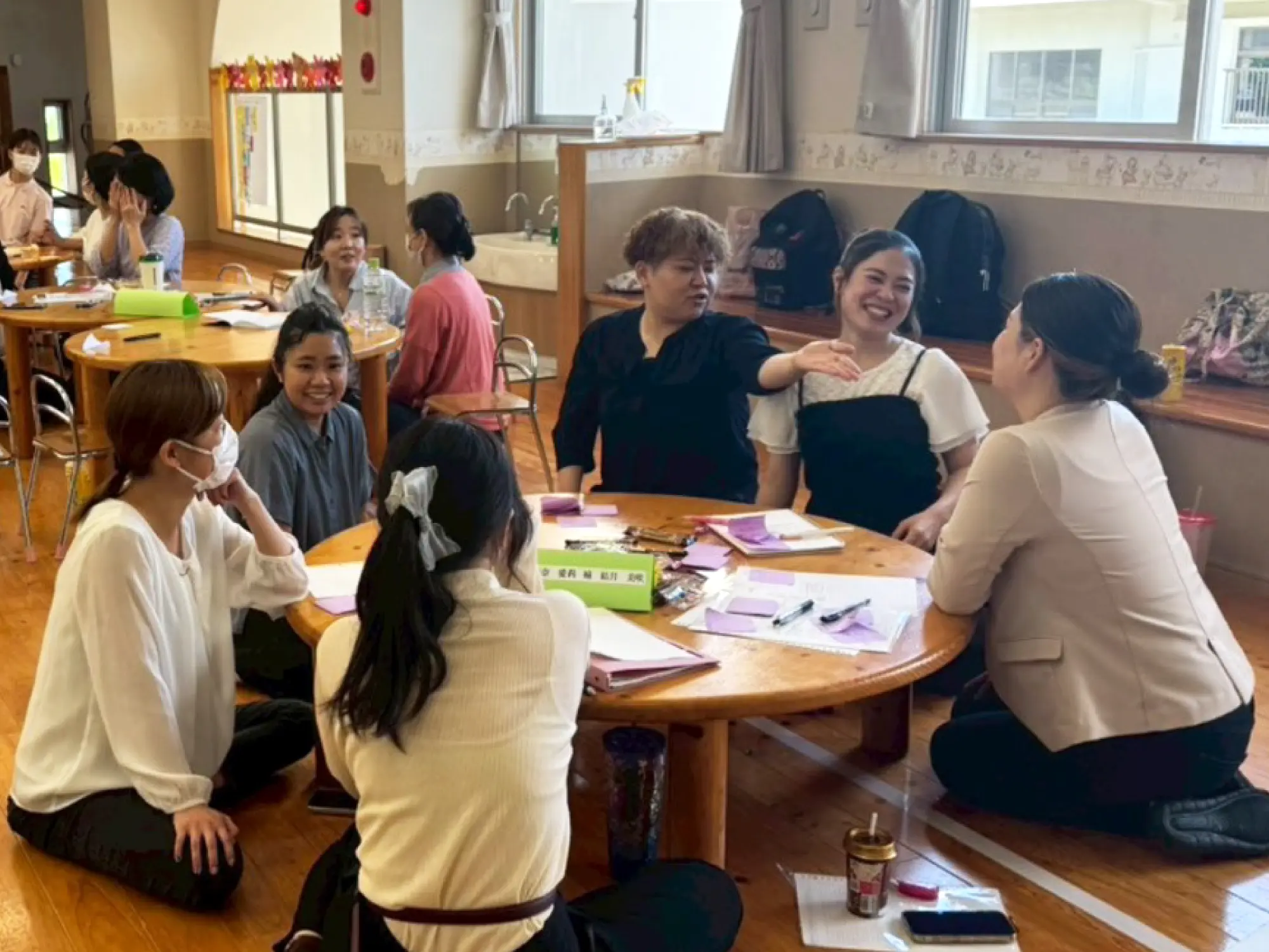 参加している職員同士、園に関して各々の意見を交換する時間が多く、とても楽しかったです。特に印象的だったのが、隣の人の“いいところ”を伝え合うワークで、お互い自然に打ち解け合える時間になり、その後も今回の研修をきっかけに職場でのコミュニケーションが増えました。