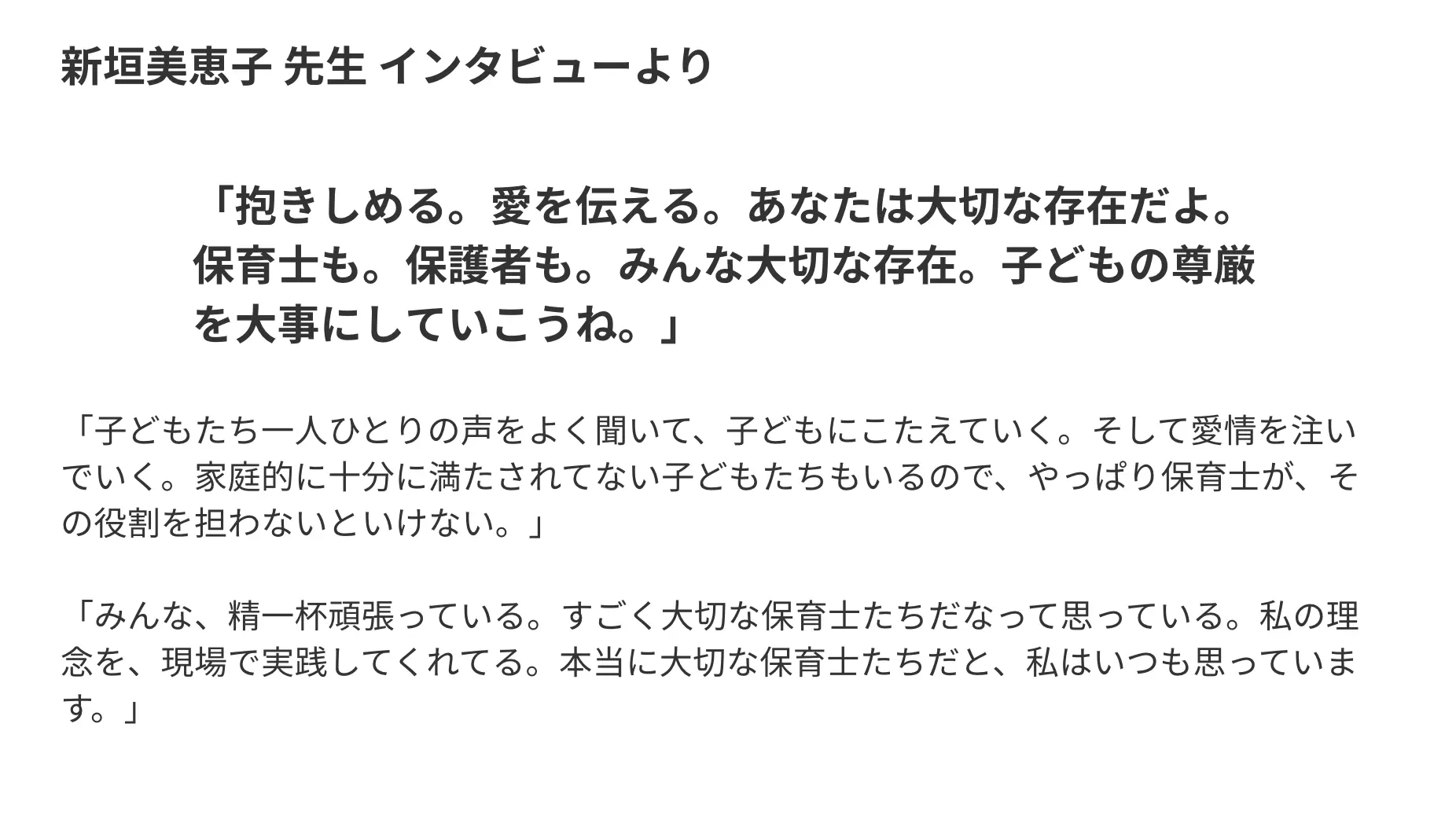 保育士としても、人としても、“人を大切にすること”がすべての基本だと思います。